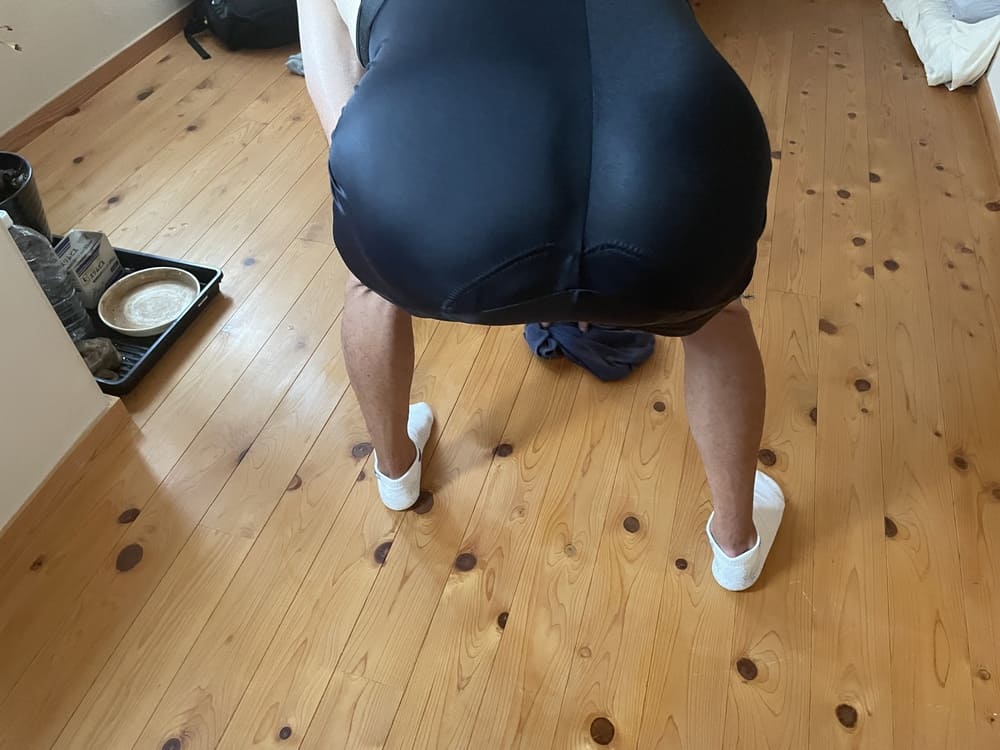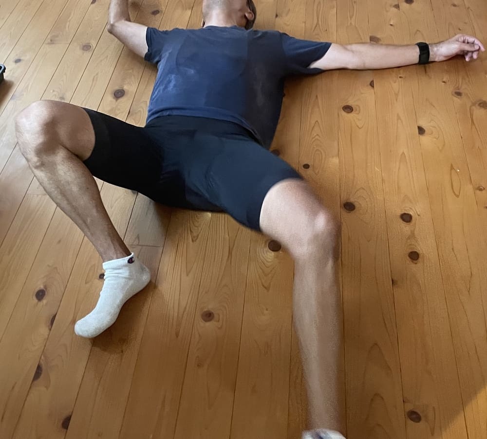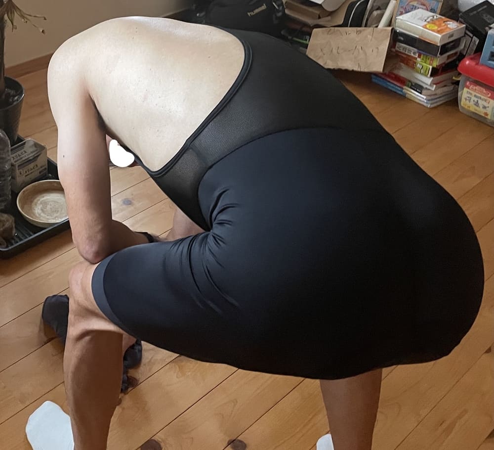 落ち着いたあとは、自分のドボドボの汗で濡れたフローリングを拭き拭きしました。