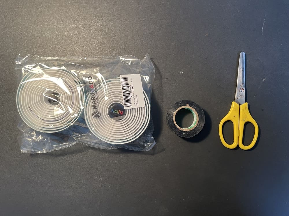バーテープの他に、ビニールテープとハサミ、といった感じです。