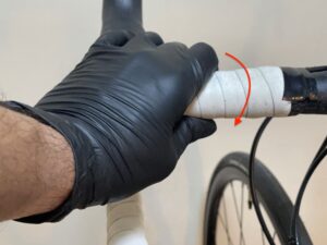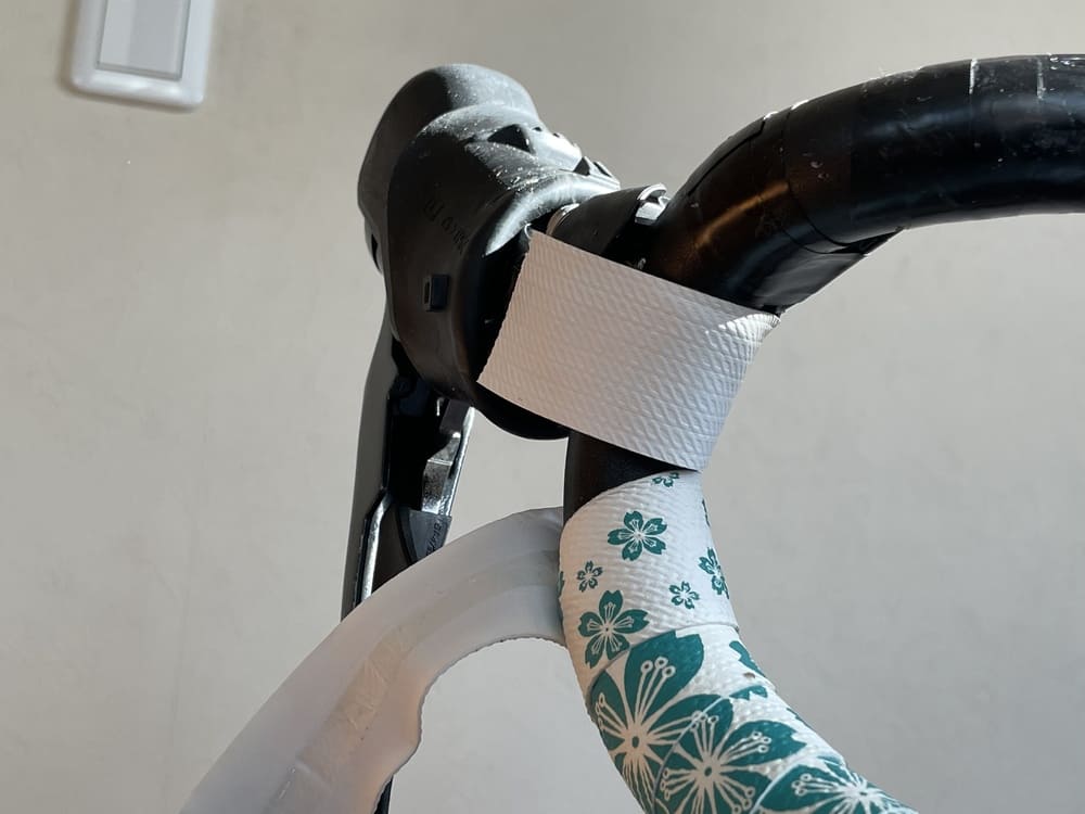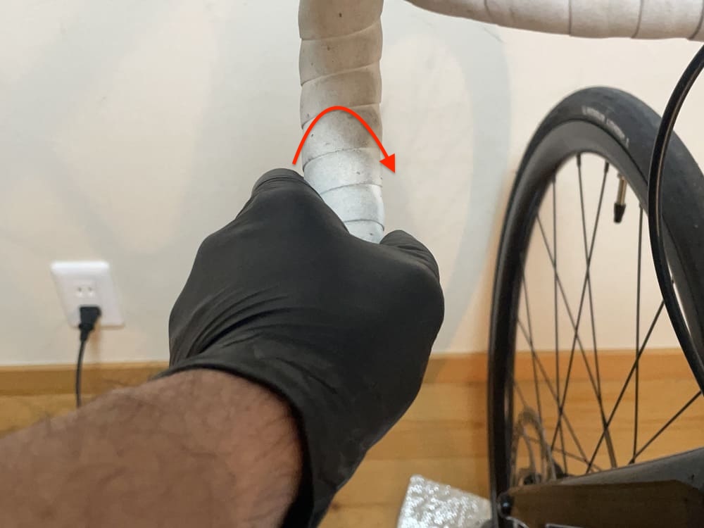 ハンドルバーの上部に来たら、仕上がり線がハンドルバーと直角になるようにこのように