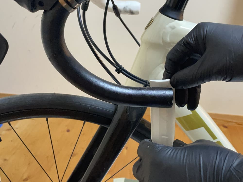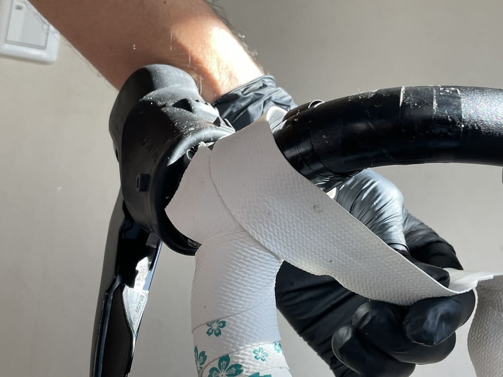 実は一回目は、隠しテープを忘れてしまい、このようにハンドルバーが露出してしまいました。