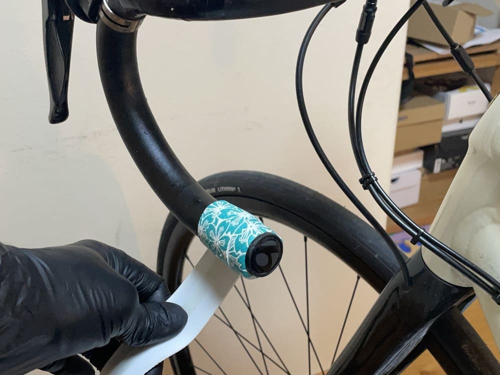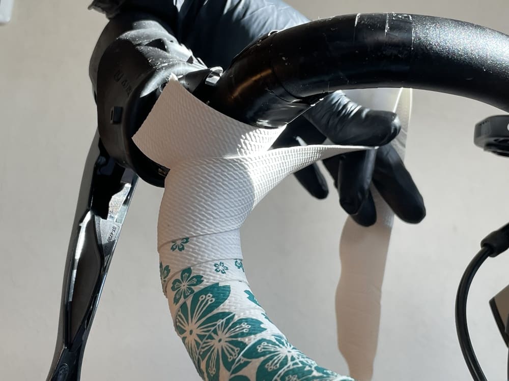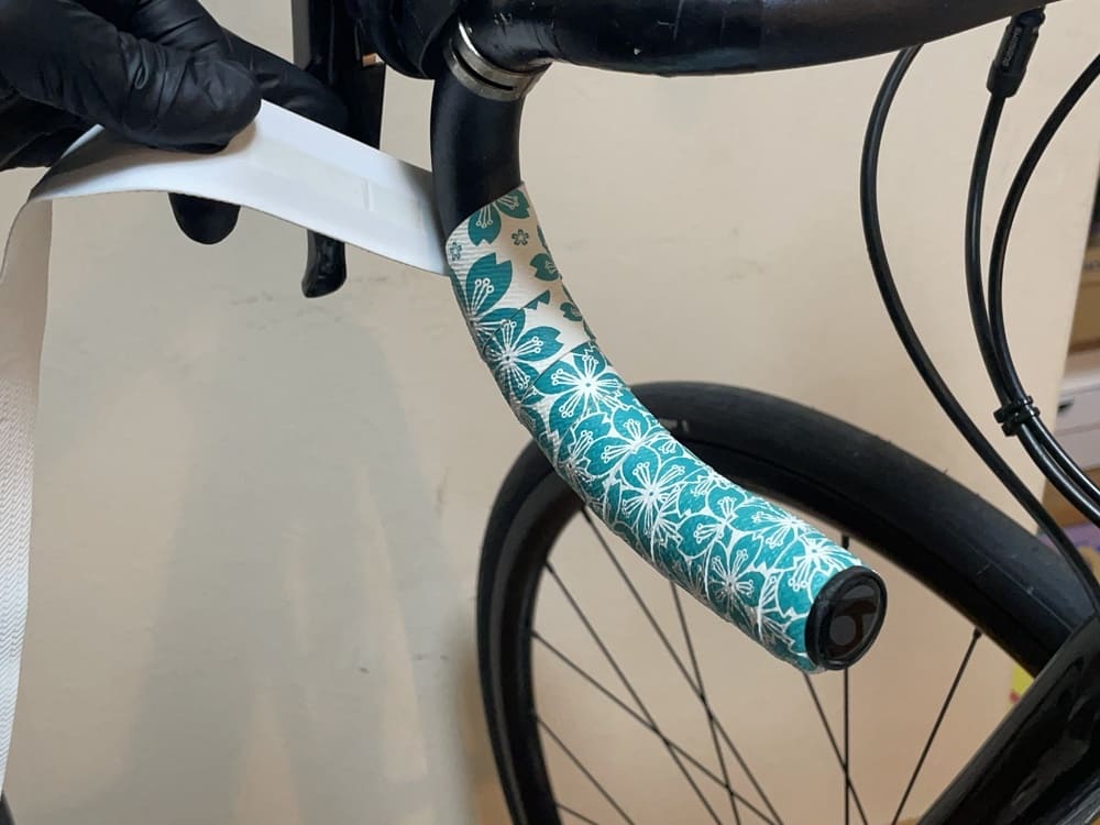 いませんでした。ですので、バーテープの先端の白地の部分をあらかじめ10cmほど切断して