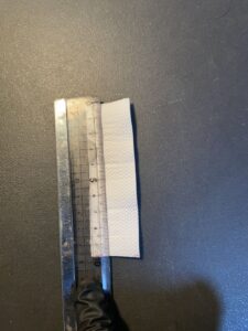 まずは端っこを3分の1ほどはみ出させて巻き始めます。
