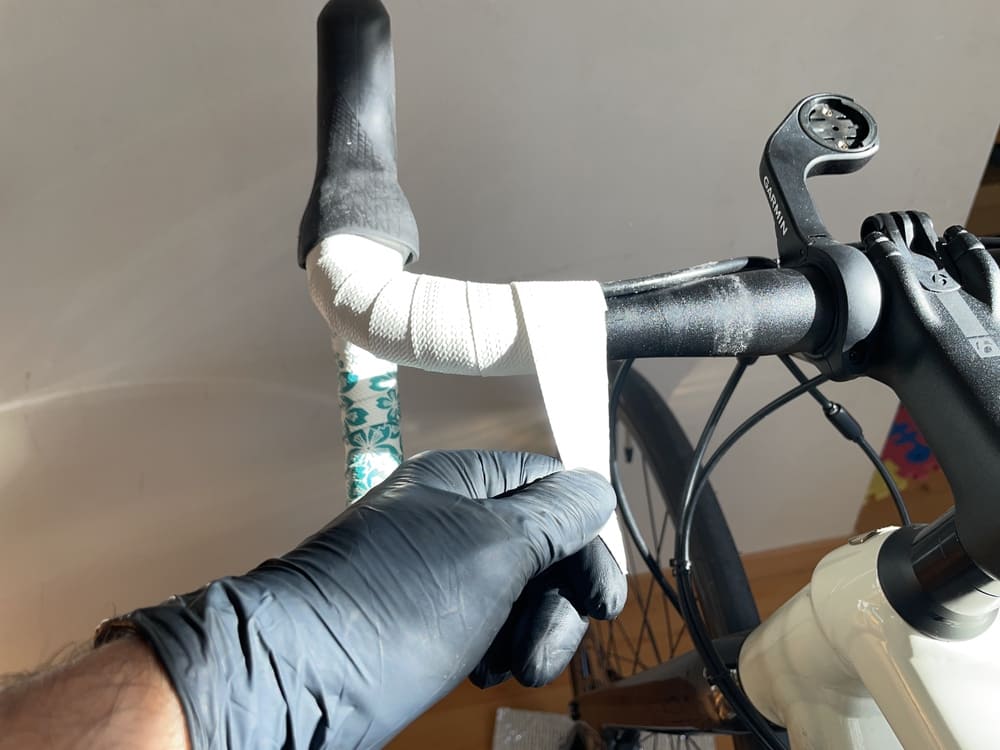 あとは3分の1ほどを重ねながらバーテープを巻き上げていきます。