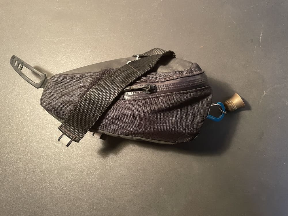 アルパカおじさんはこのサドルバックに整備用品を入れています。