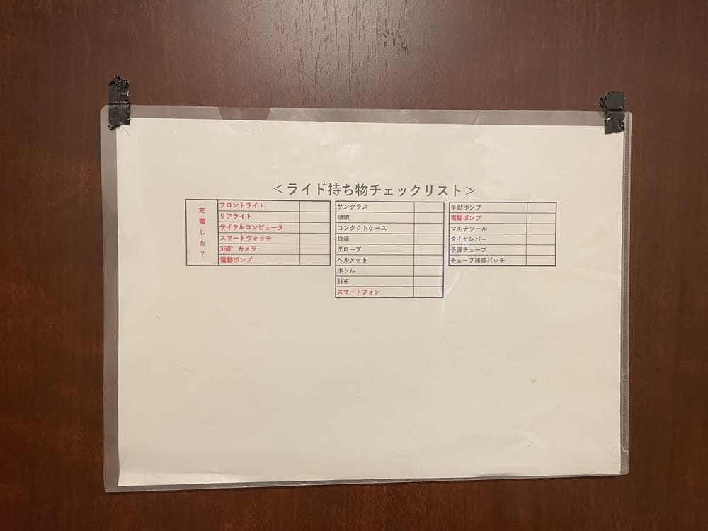 ですのでチェックリストを作ってライド前にチェックしています!