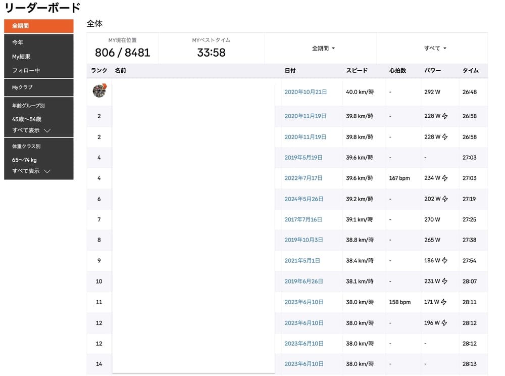 アルパカおじさんはそんな上位に食い込むはずがないので、自分の走っているルートのセグメント