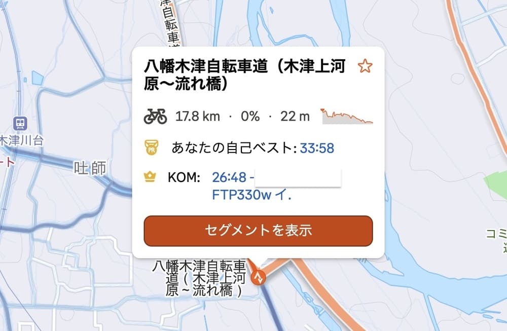 です。これにより走ったルート内にある、セグメントにおける自分の順位や走行データが