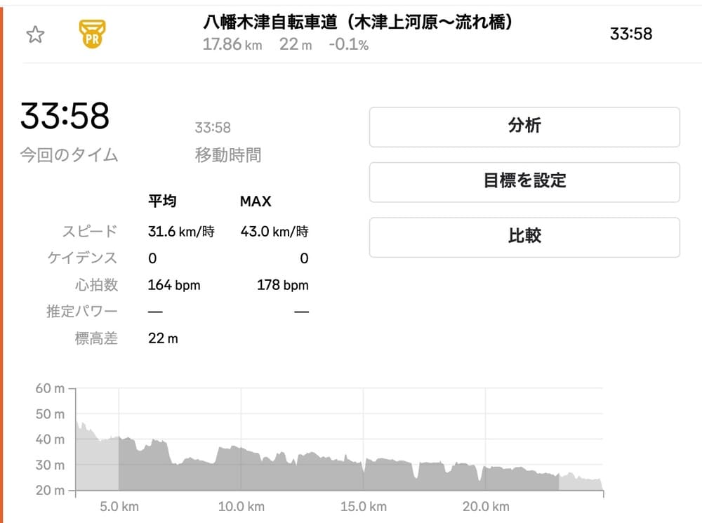 この日はこのセグメントを31.6km/hで走行したようです。